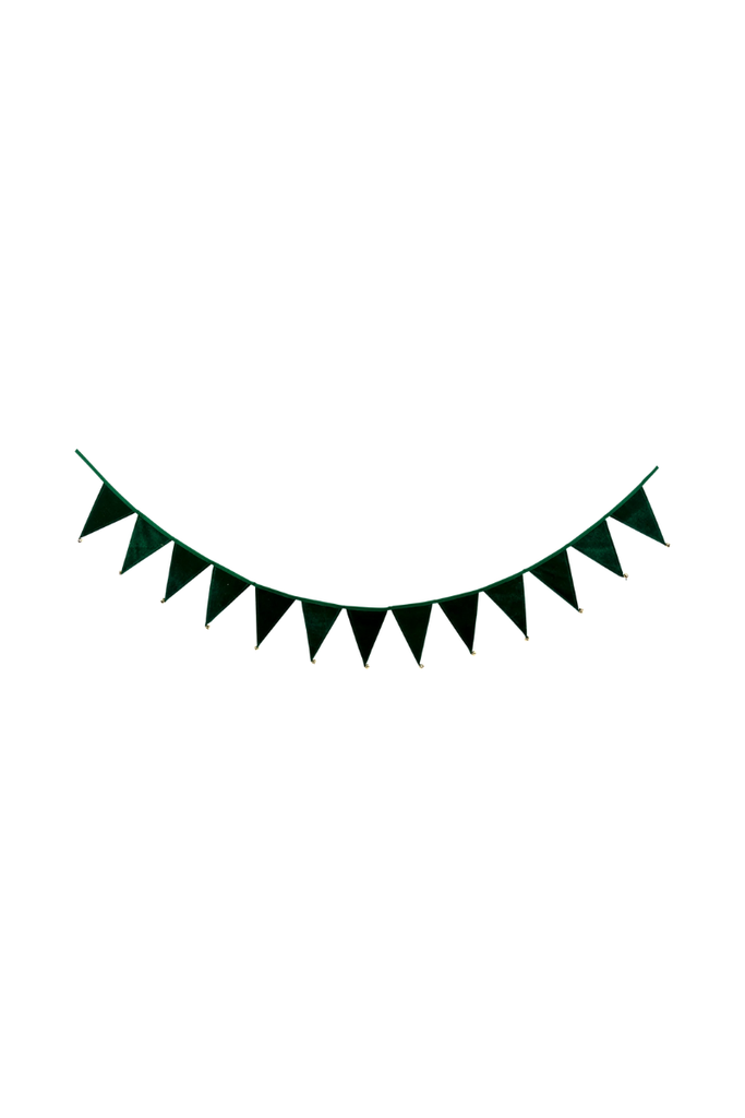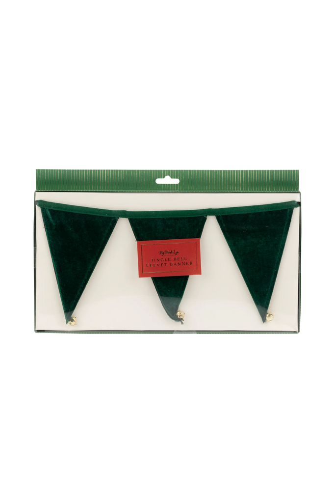 Add some jingle to your holiday decorations with this festive green velvet pennant banner! Featuring jingling bells and a lush velvet material, this banner will bring a touch of luxury and merriment to any space. Perfect for parties, events, or just sprucing up your home for the season.