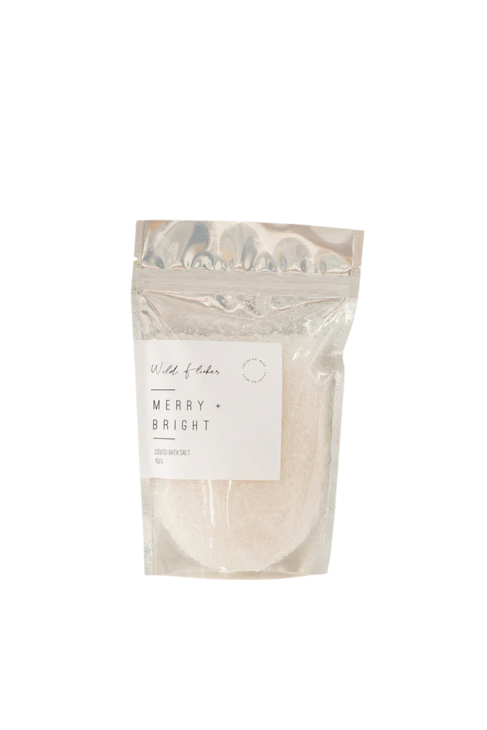 From Wild Flicker: "Our bath salts are a blend of dead sea salt and Epsom salt. Dead sea salt is packed with 21 essential minerals and can hydrate skin, ease sore muscles, replenish balance and brake down toxins. Epsom salt can help promote sleep, reduce stress and ease sore muscles."