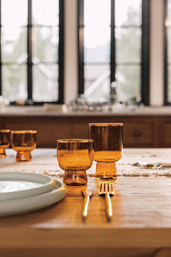 Sophisticated and alluring, the short pedestal tumbler has a sculptural shape that makes this glassware uplift any occasion.