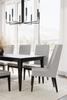 This upholstered dining chair is both elegant and timeless. Its high, straight backrest with folded sides gives it a sophisticated and refined look. Ideal for a classic or transitional decor, it will add a touch of luxury and comfort to your home.