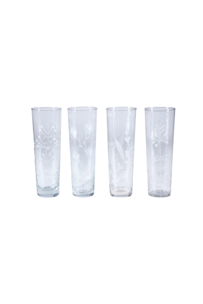Add a touch of elegance to your table setting with this 8 oz hand-blown drinking glass. Each glass features delicate etched botanical designs, making each piece unique. Sold individually and selected at random from four available styles, this glass is perfect for enjoying your favorite beverages in style.