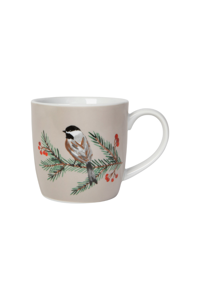 This gorgeous Birds & Boughs mug in elegant porcelain is a surefire conversation starter, because a good chat doesn't start over a salad. Perched on a berry-dappled bough, a cheerful chickadee signals the arrival of winter’s natural wonders.