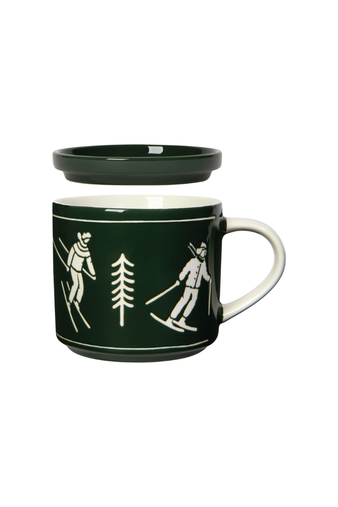 Keep it cozy with the Ski Ya Later mug wrapped in a heartwarming design and topped with a coordinating lid—perfect company for après-ski hot cocoa or curling up with a good book. Glide and carve, swoop and slide, strap on those skis, and go for a ride! Snow-covered slopes and fresh winter air clear out the mind of any worry or care.