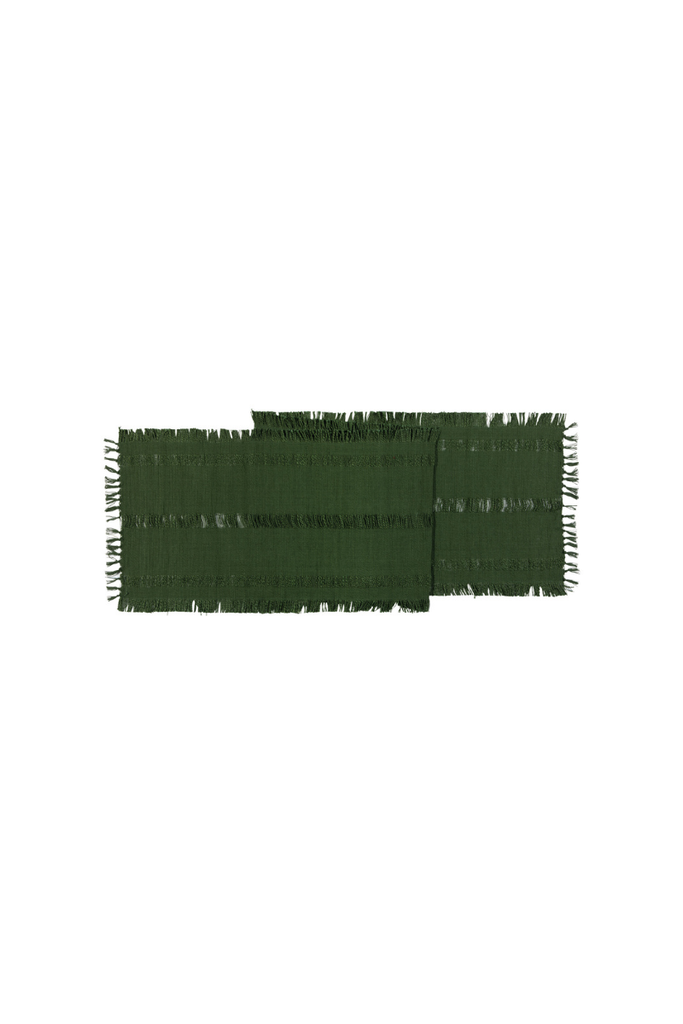 Our Ravel Cedar runner brings rustic charm to the table. A soft, slub cotton texture and fringed ends make these placemats perfect for everyday dining or entertaining.