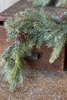 A wintery collection of spruce peppered with small granules of snow and dashed with petite pine cones.