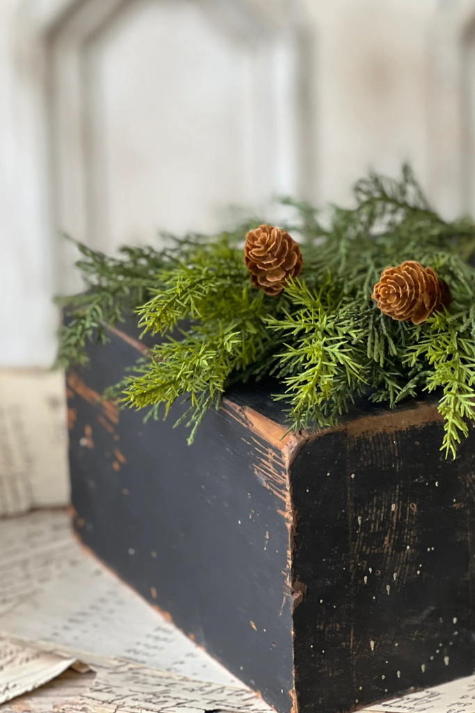Wonderfully textured mixed greenery in lovely tonal shades of green is dashed with pine cones to create a woodsy collection that can easily be paired with other decor.