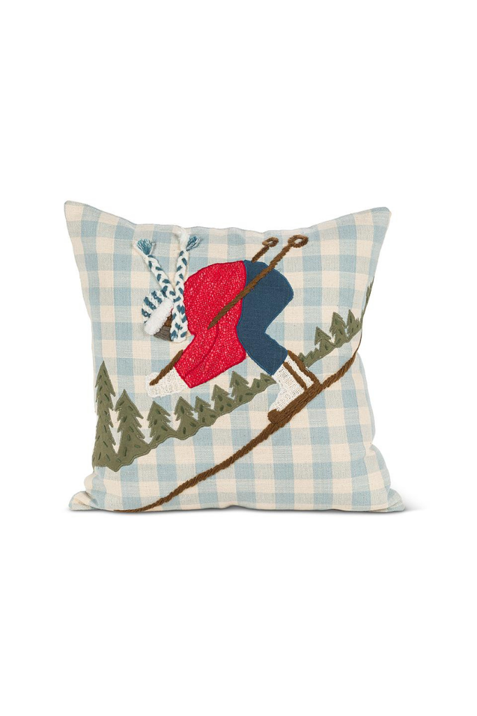 Cozy up this holiday season with the help of this Square Downhill Skier Pillow! Featuring a snow-covered mountain with a skier and trees, this plush square-shaped pillow brings all the warm and fuzzy vibes of a winter retreat to your sofa or couch. It’s like a little hug from the holidays!