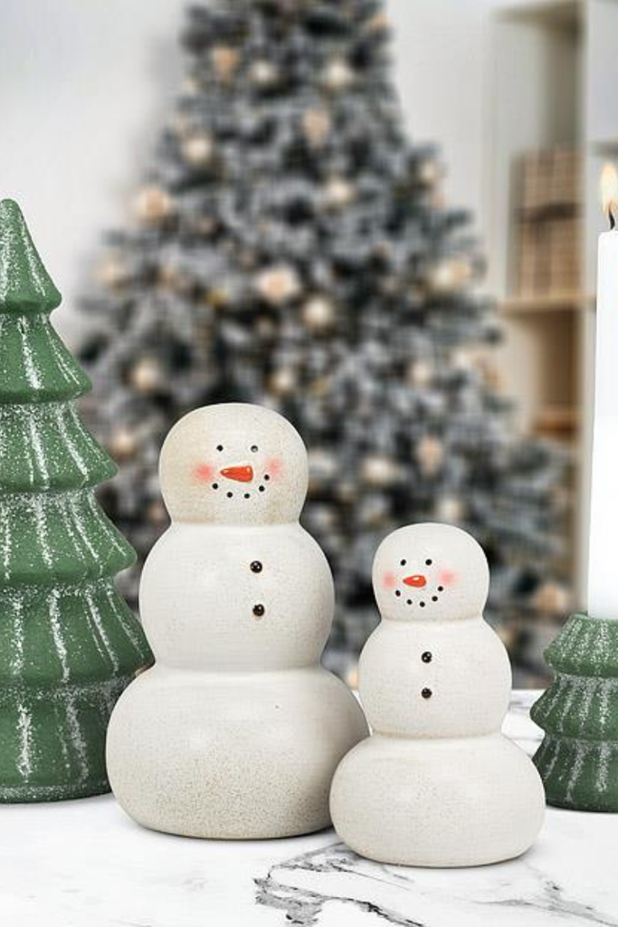 This jolly snowman figurine is all smiles and ready to spread some winter cheer. Its simple yet evocative shape, complete with fun details like features made of coal along with a carrot nose, makes this festive figurine a delightful way to brighten up mantles, countertops, tables and more.