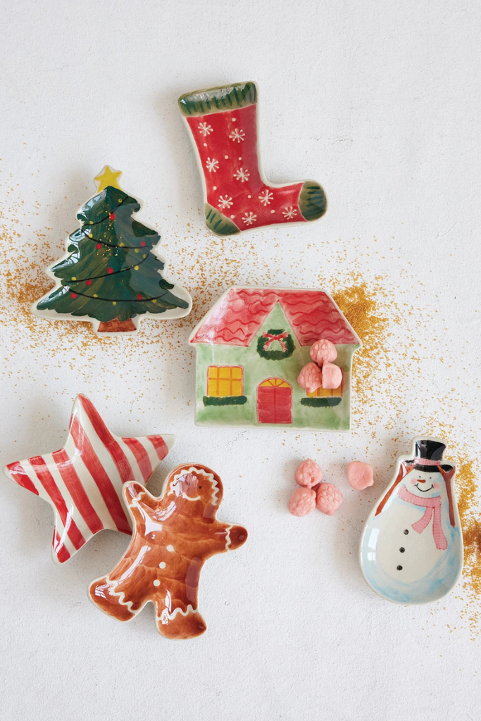 Add a festive touch to your table with this hand-painted stoneware holiday-shaped dish. Crafted from durable stoneware, this dish features a charming holiday-themed design, perfect for serving small treats or as a decorative accent during the festive season. Its compact size makes it ideal for individual servings or as a delightful addition to your holiday decor.