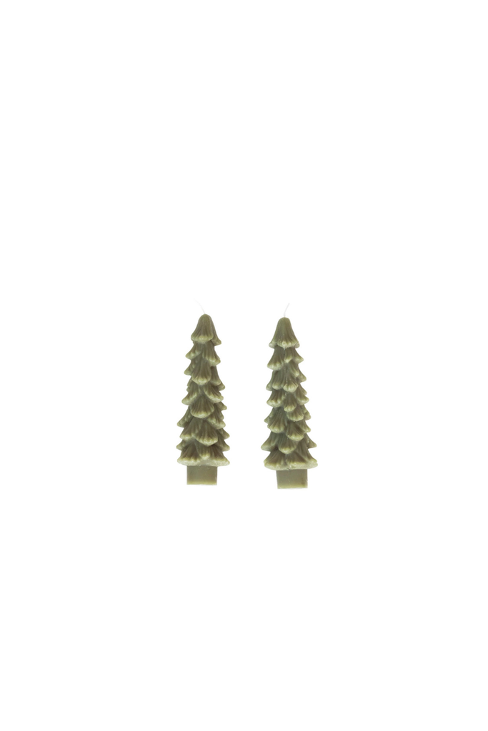 Add a festive touch to your holiday decor with these sculptural tree-shaped taper candles. Crafted from 100% paraffin wax, these candles feature a rich evergreen color and a whimsical tree silhouette, making them perfect for mantelpieces, dining tables, or as a charming gift. Each candle has an approximate burn time of 5 hours.