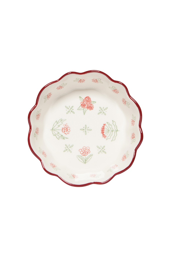 Delicate flowers in a quaint palette of sage green, wine red and bright white exude rustic farmhouse charm with this Camellia bowl.