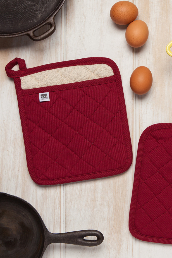 "Each potholder features an optimal quilting pattern for ease of movement and heat protection. The hand pocket is lined with thick Terry for comfort and additional heat protection."