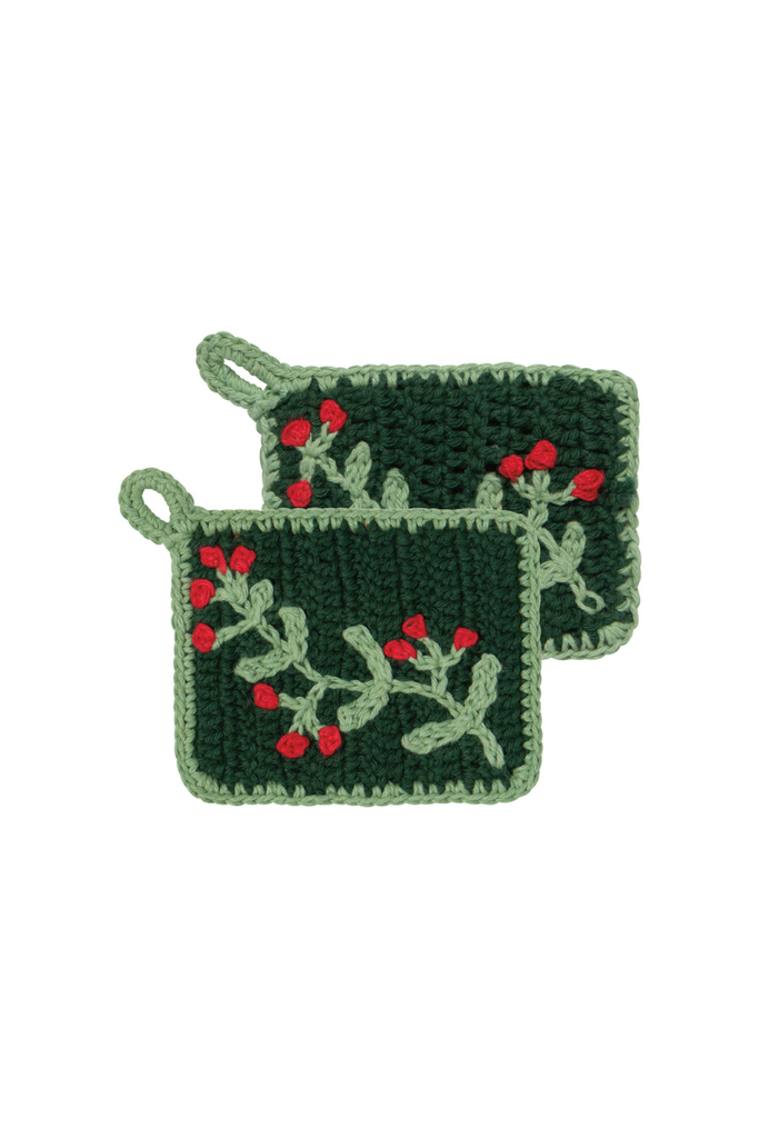 The hand-crocheted Winterberry scouring sponge set adds artisanal flair and gentle yet effective scrubbing power to kitchen clean-up. It’s the year-round winterberry plant's moment to shine. Delightful red berries and delicate evergreen branches bring a naturally appealing element home for the holidays.
