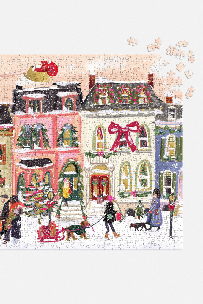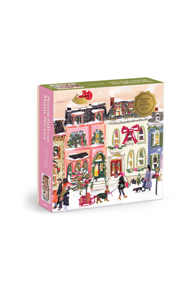 Snowfall On Main Street 1000 Piece Puzzle by Galison features a busy city street during the holiday season. This puzzle is just the right level of challenge for the whole family to join in on for hours of puzzling fun! The box includes an insert with the full puzzle image for reference.