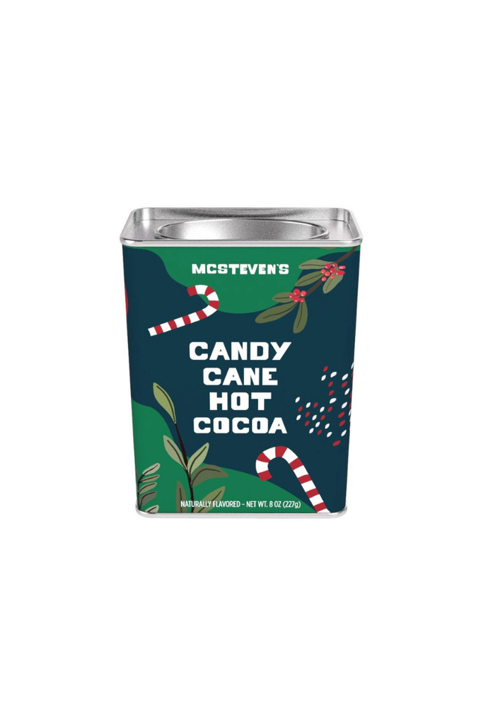 Enjoy this naturally flavored Candy Cane Hot Cocoa in a decorative floral Christmas styled tin. Mix with water or milk and sip away!