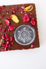 34% Belgian milk chocolate topped with pistachios, crushed freeze dried cranberries and a festive chocolate seal.