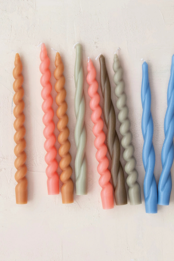 Add a graceful touch to your décor with these 10-inch unscented twisted taper candles in soft pink. Crafted from paraffin wax, this elegant boxed set of two delivers an estimated 5 hours of burn time, making them perfect for dinnerscapes, romantic moments, or serene styling.