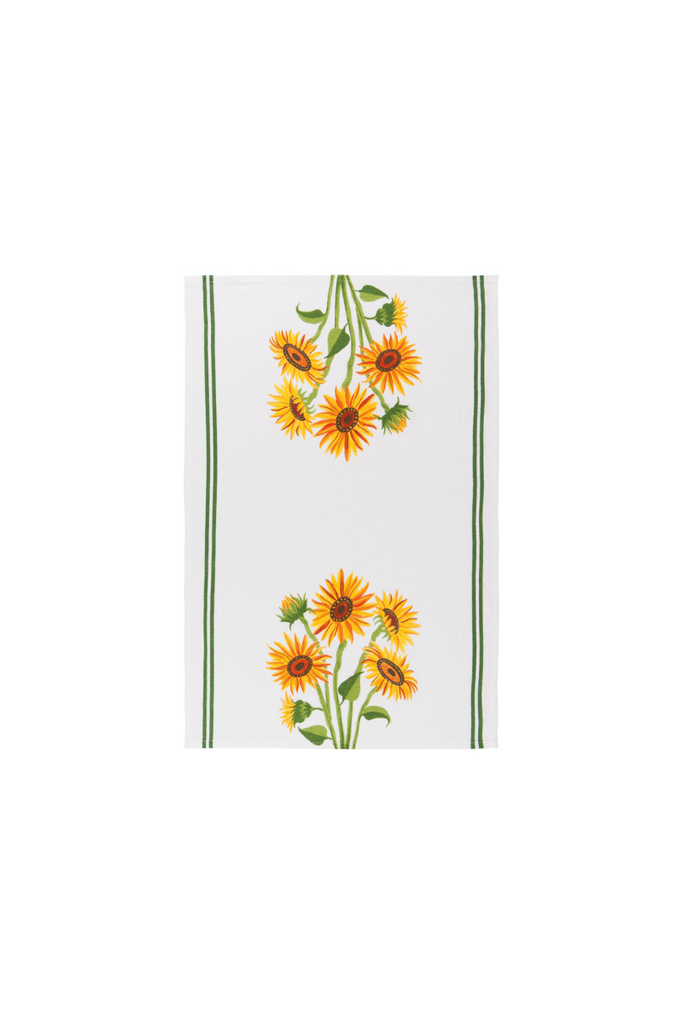 Extra soft and uniquely textured these Sunflower floursack dishtowels will evoke nostalgic memories of grandma's favorite kitchen linens. Made from superior quality cotton, this set includes three charming prints of beautiful Sunflower blooms that are sure to become treasured classics in the kitchen.