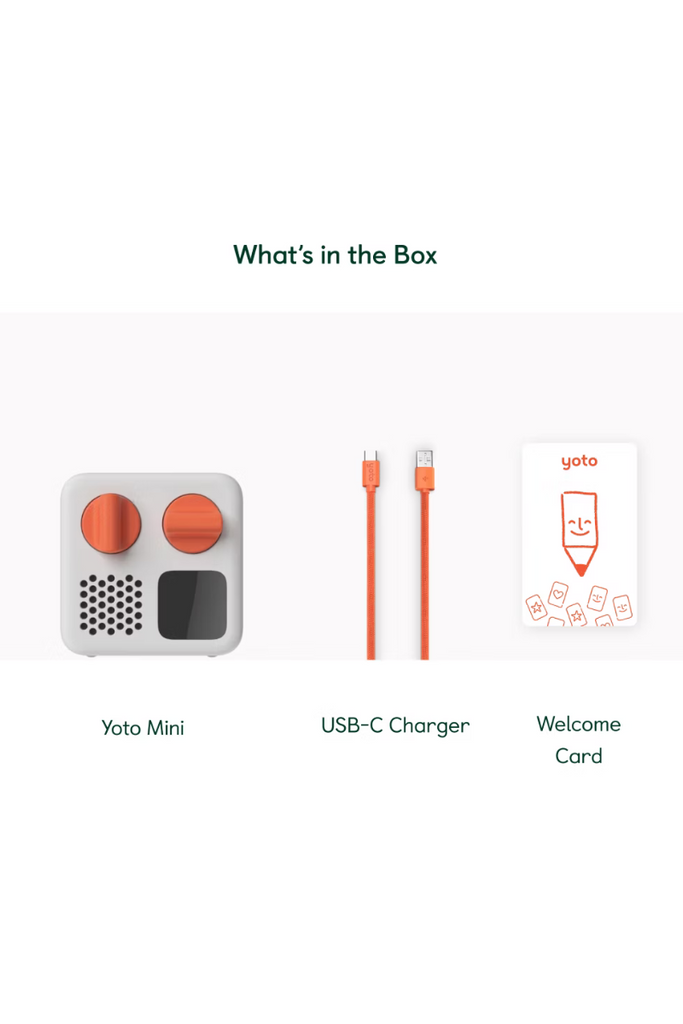 Yoto Mini lets kids explore their imaginations as they explore the world. Kids from 3-12+ use physical cards to explore the best audiobooks, music, activities and educational audio on the move.