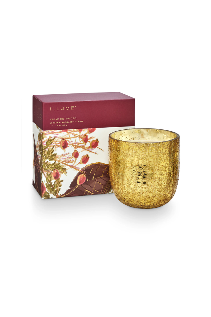 This large crackle glass candle comes packaged in an illustrated keepsake box, perfect for gift giving.