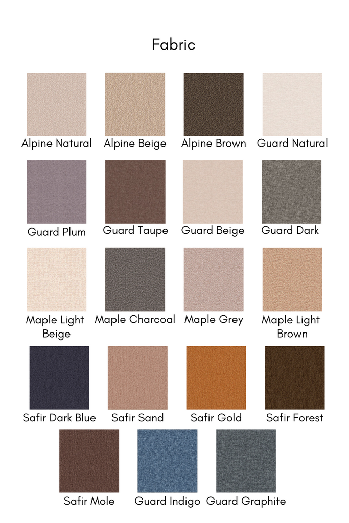 Once you've selected your fabric/leather grade and wood finish, please make sure to add it to your order notes. To see your Oskar in the selected colour please click here.