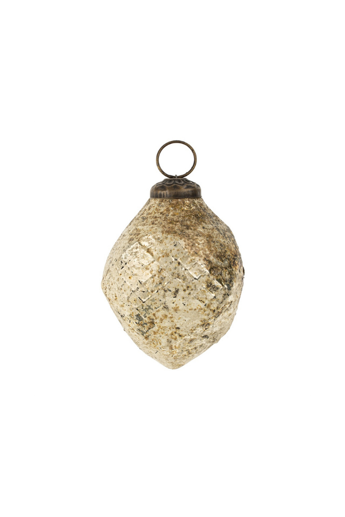 Infuse your holiday decor with the old-world charm of the Chandi Holiday Ornament in Crosshatch. Made from recycled glass, this ornament features a delicate etched crosshatch pattern and a unique patina effect that gives it a vintage-inspired elegance. Whether hung on a tree, incorporated into a festive tablescape, or nestled in a decorative bowl, it brings a sense of history and sophistication to seasonal styling.